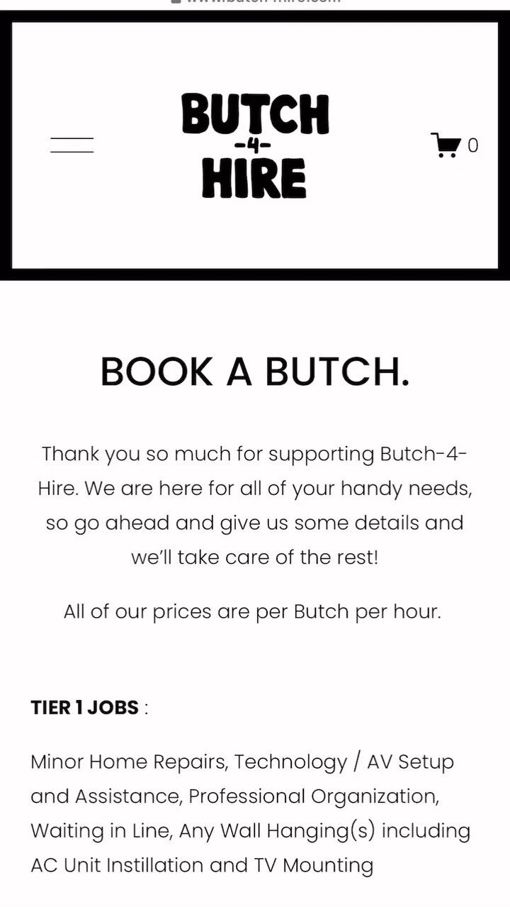A QUEER HANDY SERVICE FOR QUEER PEOPLE. BIG JOBS. MOVING. ROOM / WALL PAINTING. CUSTOM CARPENTRY. MINOR HOME REPAIRS. PET SITTING. TV MOUNTING. AC UNIT INSTALL. LANDSCAPING. OUR TEAM OF BUTCHES ARE AT YOUR SERVICE. WE REPRESENT A VAST EXPANSIVENESS OF BUTCH IDENTITIES. WE SUPPORT AND UPLIFT OUR TRANS MEMBERS AND SIBLINGS. TRANSPHOBIA WILL NOT BE TOLERATED. Book a Butch. INSTAGRAM - @BUTCH4HIRE